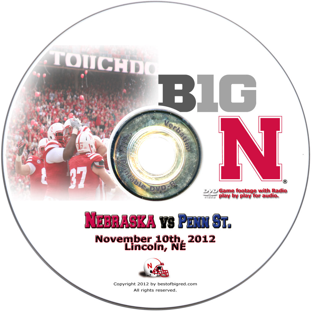 November 10, 2012 - Lincoln, NE. The Huskers entered the game tied with Michigan for the lead in the Legends Division and looking to take a step closer to the Big Ten championship game. As they did often in 2012, the Huskers stumbled early trailing 20-6 at halftime. NU comes storming back in the second half taking their first lead of the game with 10:57 left in the game on a 5-yard touchdown pass from Taylor Martinez to Jamal Turner. The Huskers outscore Penn State 26-3 in the second half and pull off another come from behind win after being down by double digits after halftime. Ameer Abdullah and Martinez both finish with over 100 yards rushing and freshman Imani Cross punches in two critical short-yardage touchdowns. After giving up some big plays in the first half, the Blackshirts turn in a gritty second half performance and force 4 PSU turnovers on the day. The Huskers get their 8th win of the season with a final score of 32-23 and stay atop the Legends Division with two games left in the regular season. Includes video footage of entire game as filmed by Husker Vision. Husker radio play-by-play for audio. DVD video, 110 minutes.