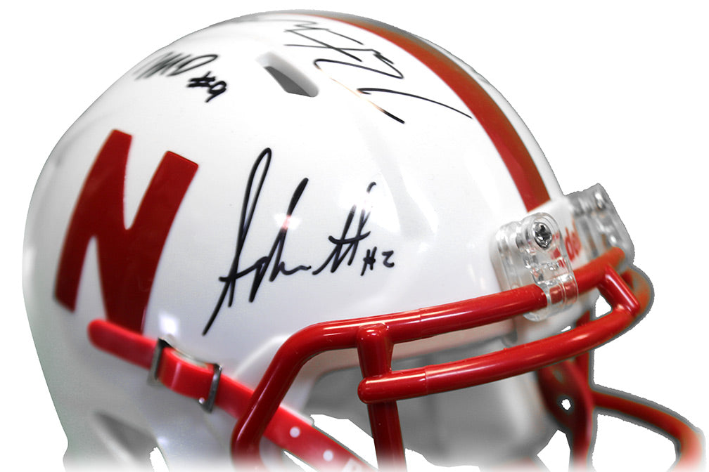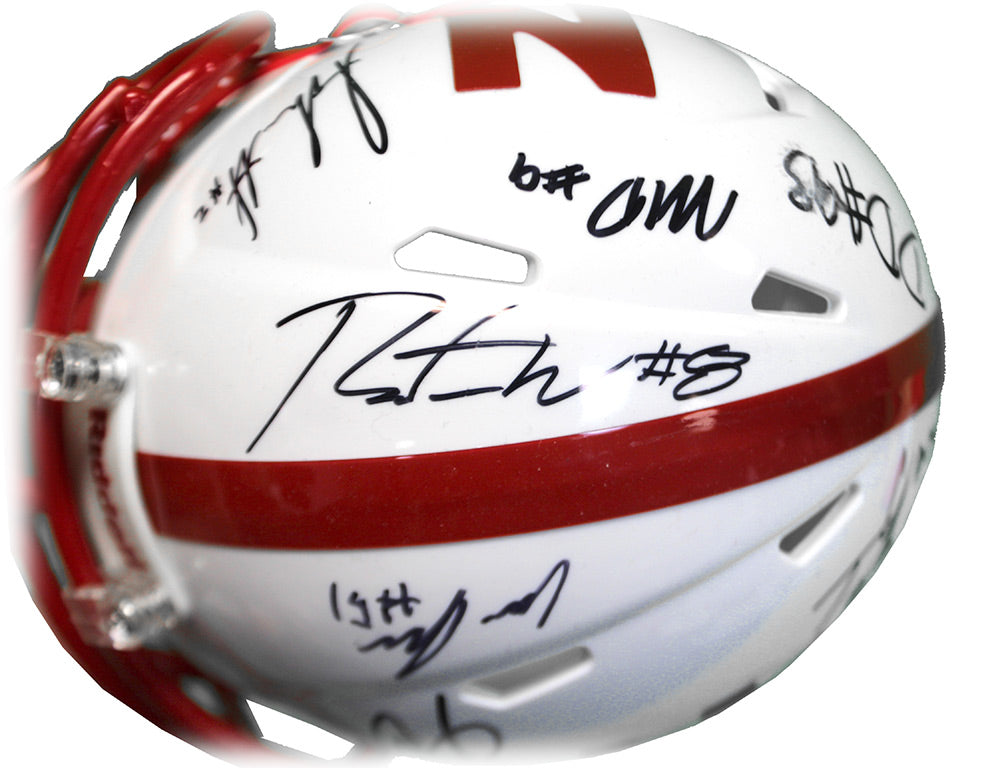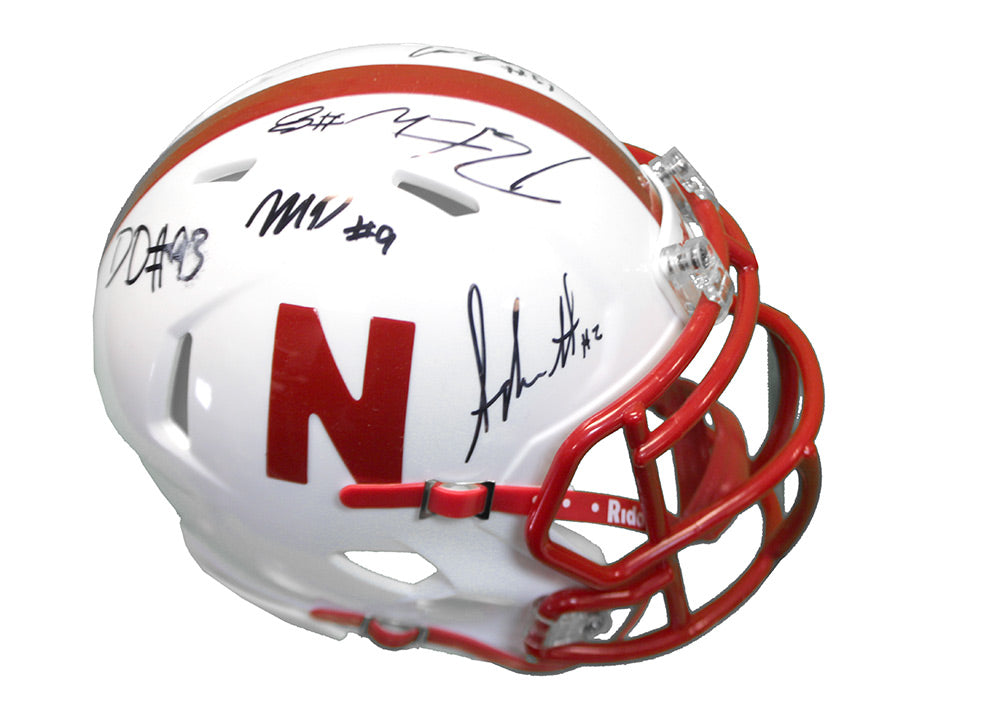 Signature mini helmet hand-signed by Austin Allen, Cam Taylor-Britt, Adrian Martinez, Damion Daniels, Cam Jurgens, Dontai Williams and Marquel Dismuke.