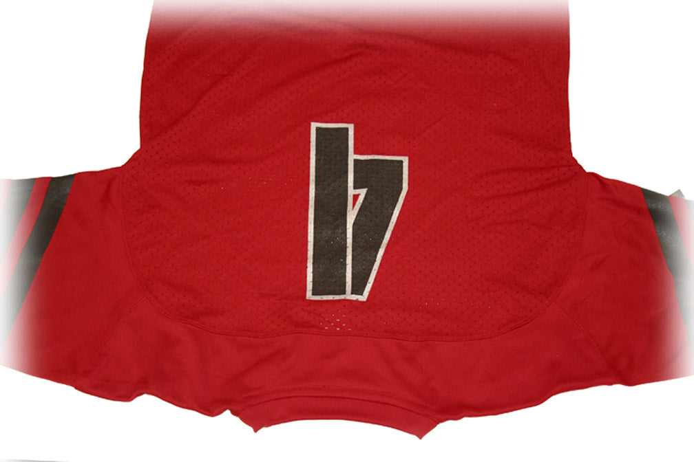 100% Polyester, screen-printed # 4 on front and back, black with silver outline, 2 black stripes on sleeves and "125th season patch", red with black and silver detailing, Available in: 2T, 3T, 4T, S, M, L.