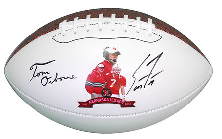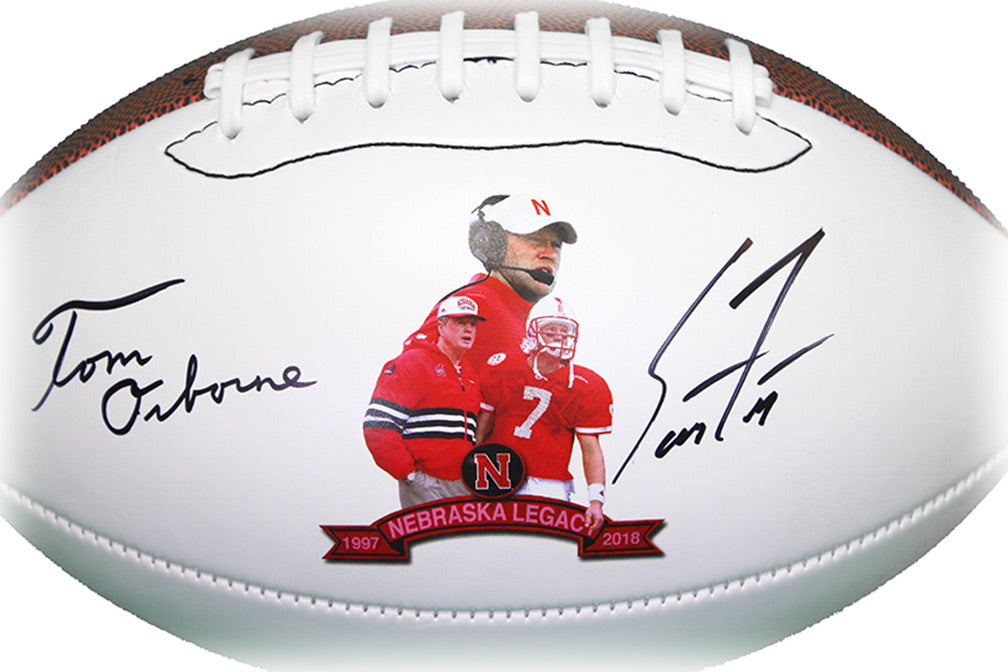 Commemorative football celebrates the beginning of new era rooted in Husker history and the passing of the torch between Nebraska native sons. Hand signed by Husker legendary coach Osborne and Nebraska National Champ QB and coaching prodigy, Scott Frost. Best of Big Red exclusive, limited quantities. Certificate of authenticity included.