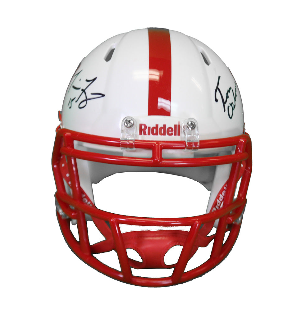 Tommie Frazier and Tom Osborne autographed Husker mini helmet. Hand signed by Husker legends, National Champs, and College Hall of Famers, and possibly the best college QB and coach of all-time, Tommie Frazier and coach Osborne. Certificate of Authenticity included.  Very limited quantities.